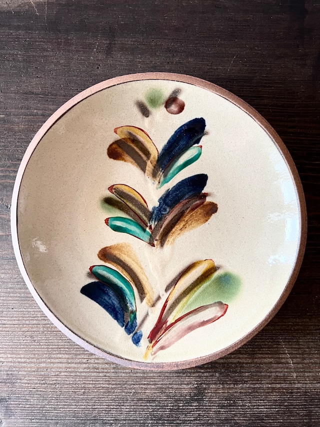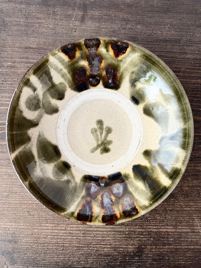 金城陶器 秀陶房 5寸平鉢 飴 唐草 魚紋