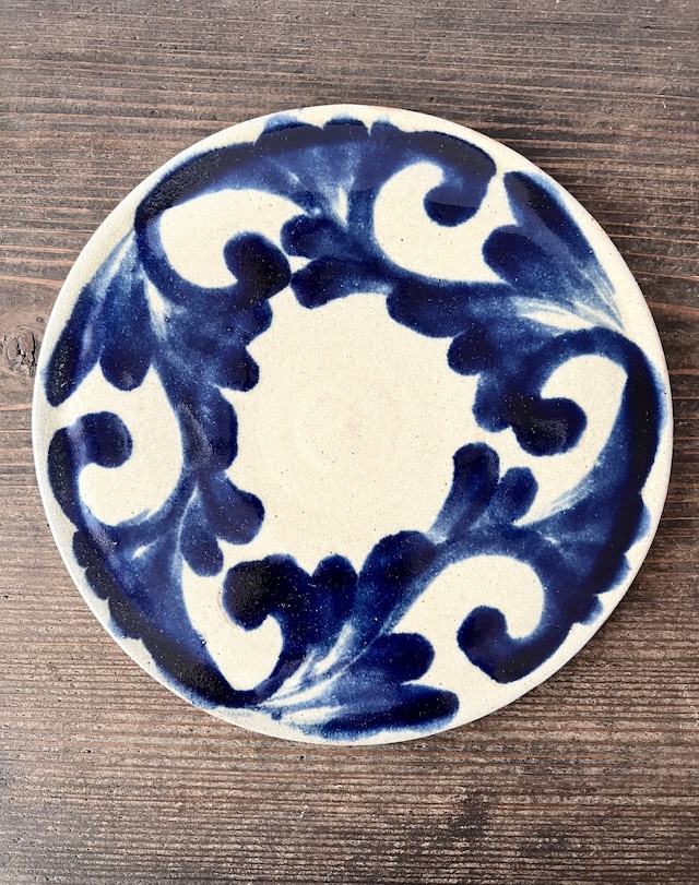 金城陶器 秀陶房 6寸皿 コバルト 唐草 魚紋