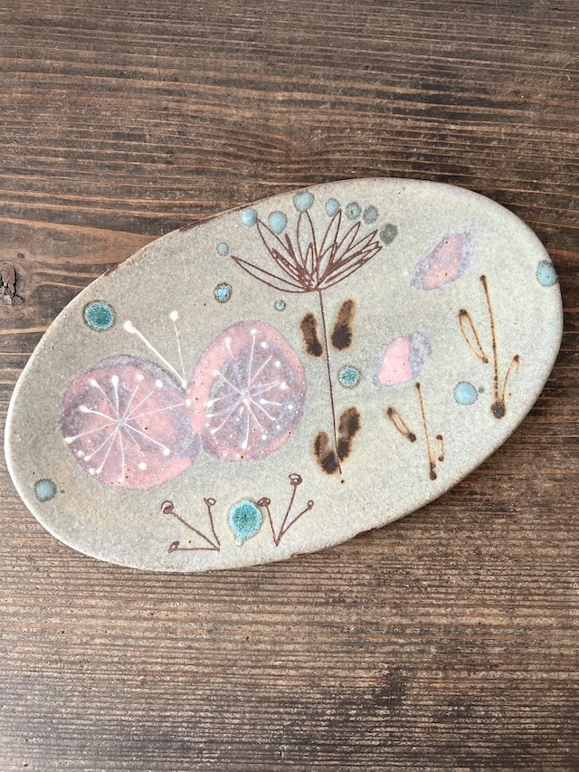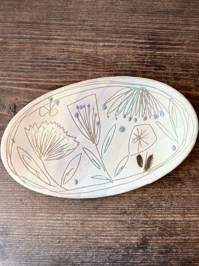 土の種 オーバル皿 花畑 やちむん