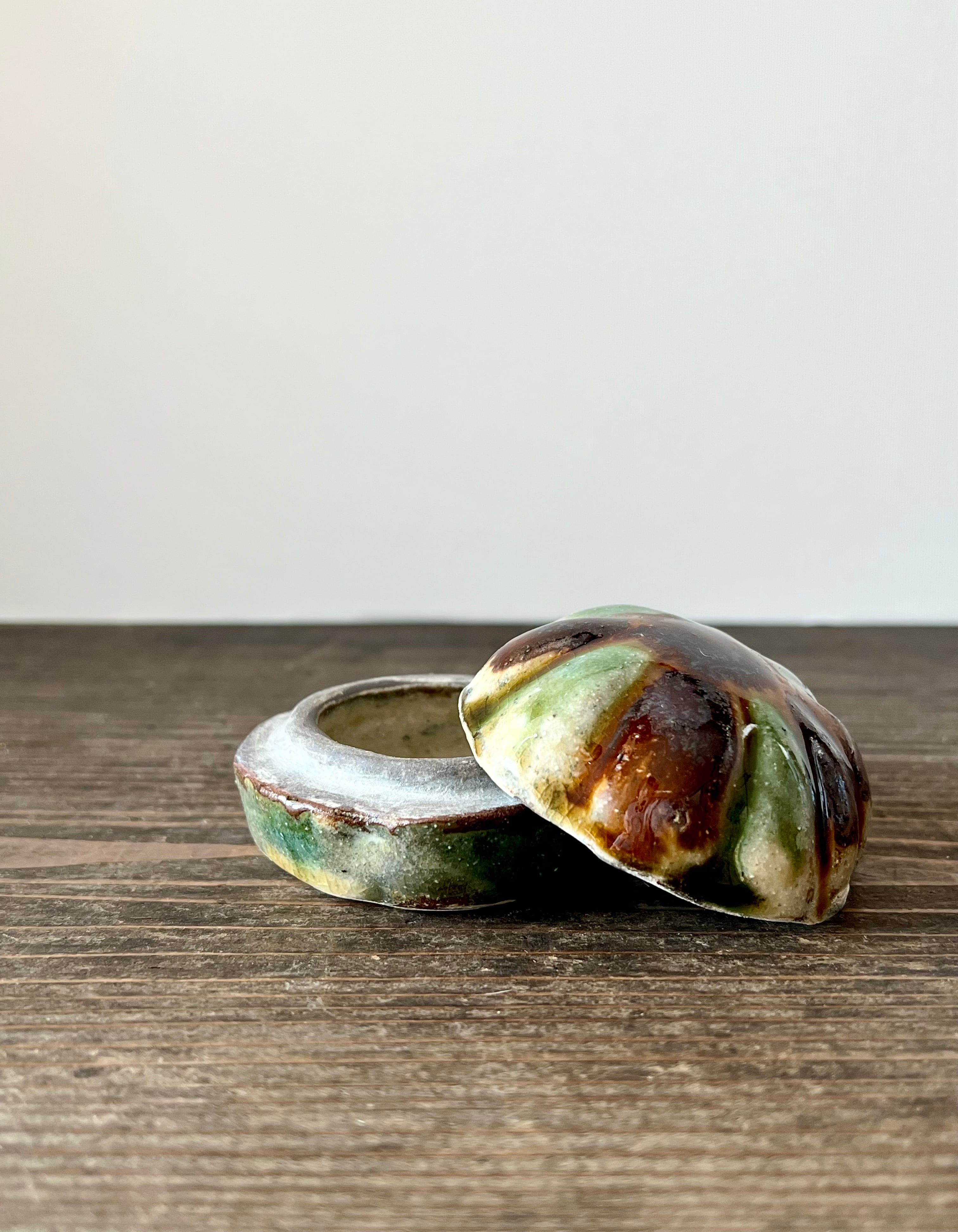 ひとつひとつ丁寧に手びねりで作られた香合になります。香を入れる蓋付きの小さな容器ですが、アクセサリーなどの小物を入れたりご自由にお使いください。