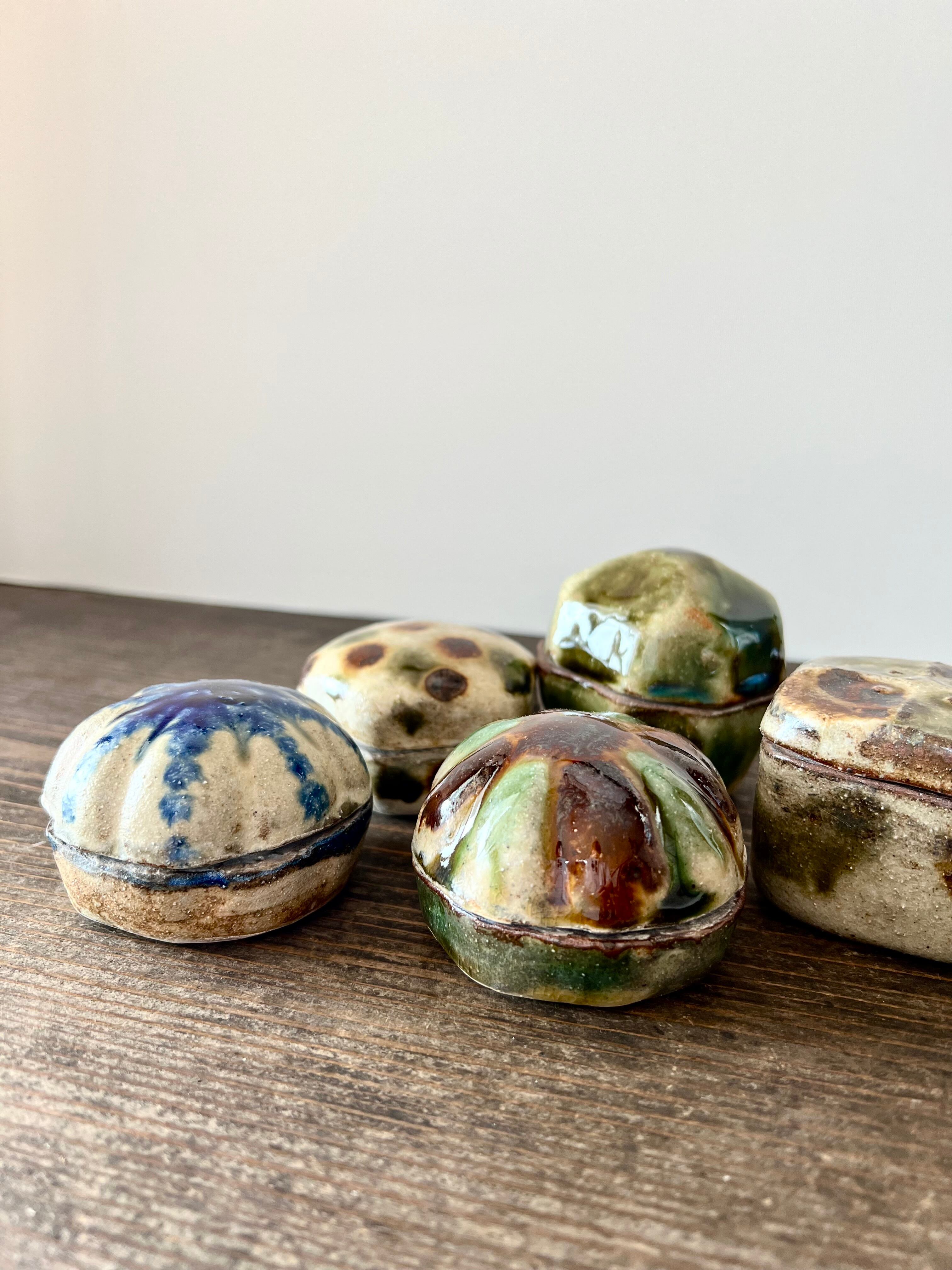 ひとつひとつ丁寧に手びねりで作られた香合になります。香を入れる蓋付きの小さな容器ですが、アクセサリーなどの小物を入れたりご自由にお使いください。