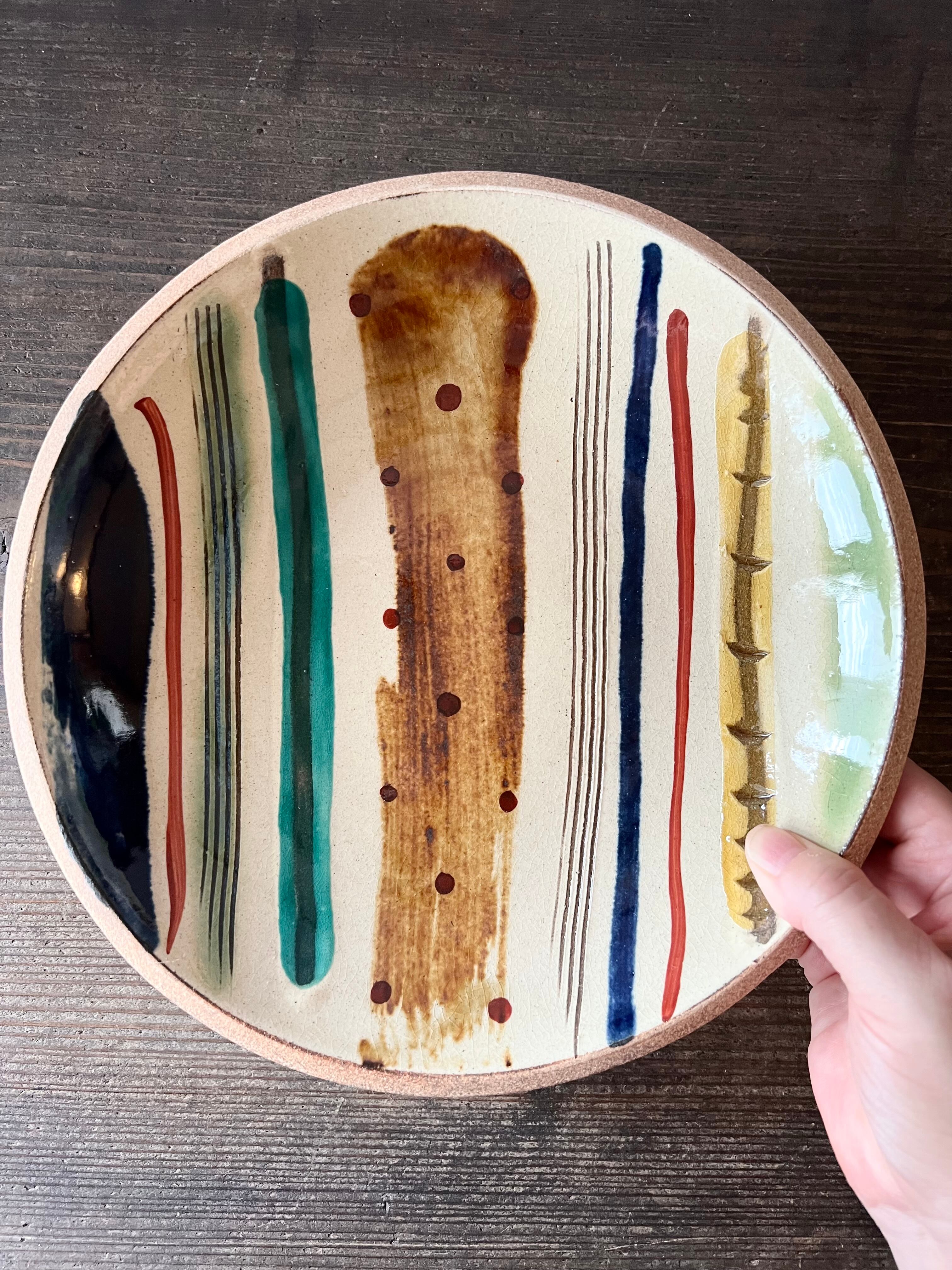 一翠窯 チャンプルー皿 大 ストライプ やちむん