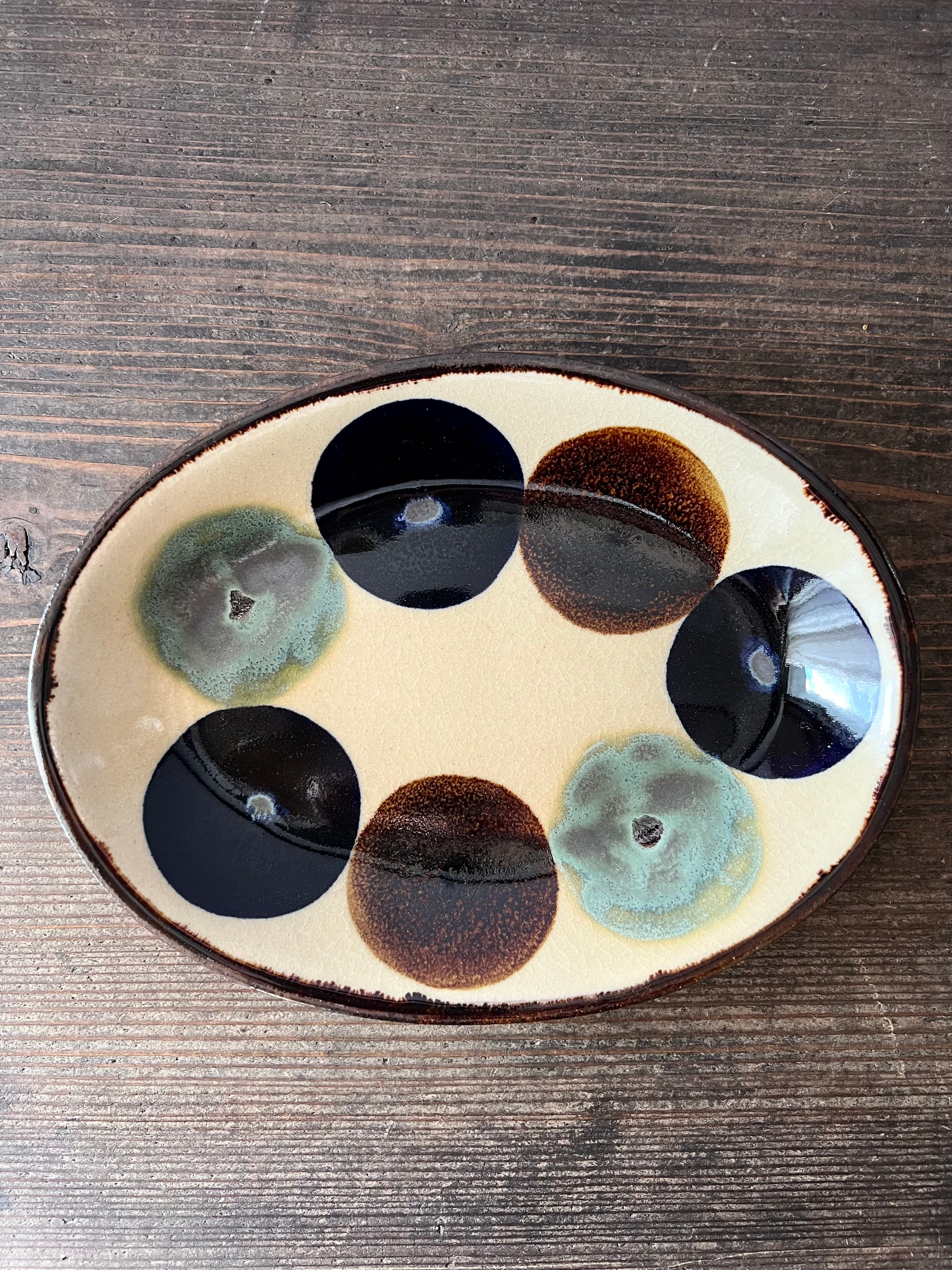 エドメ陶房 オーバル皿 三彩丸紋 小 やちむん