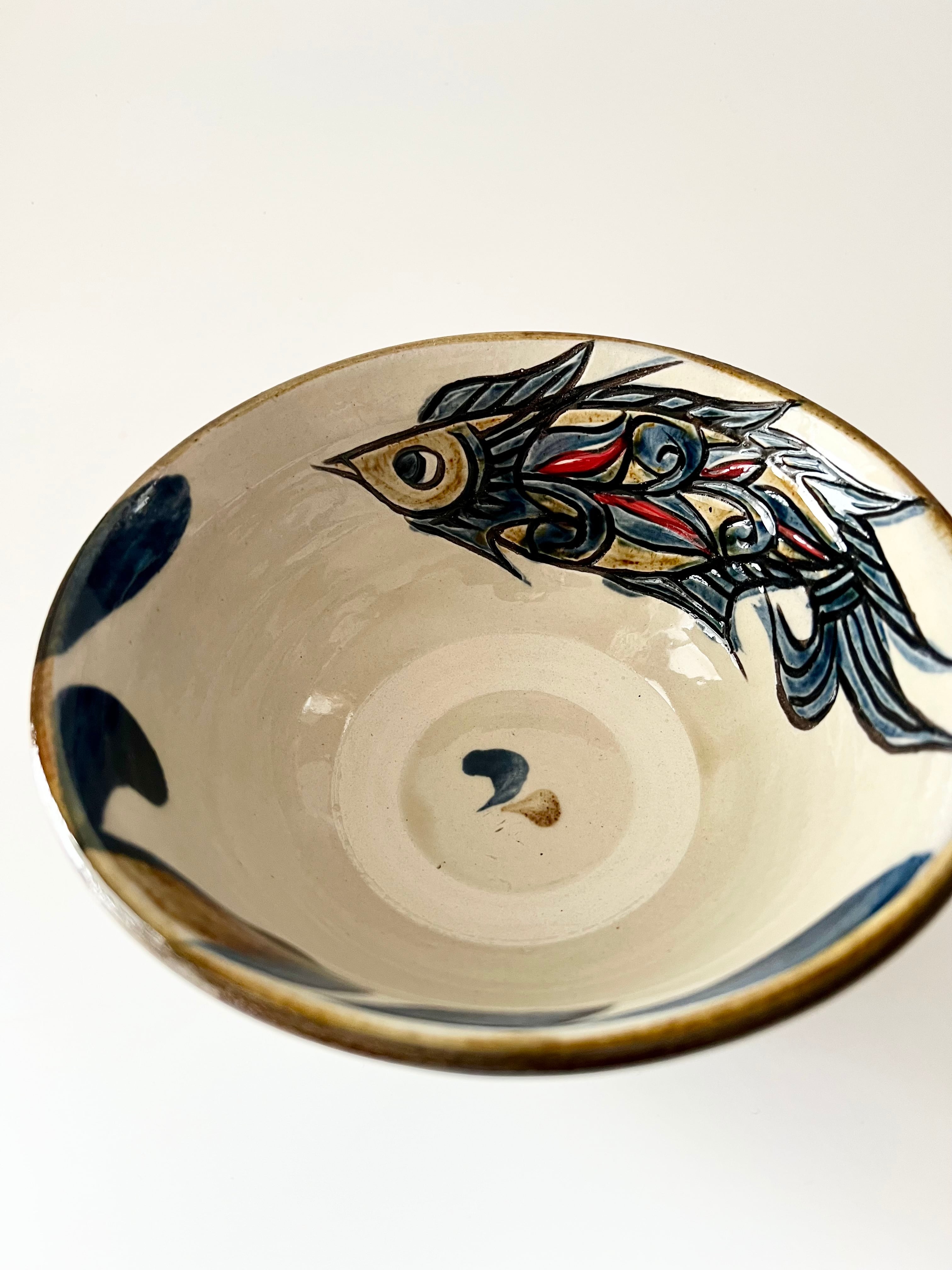 人間国宝金城次郎からの金城一門伝統の壺屋焼を受け継ぎ、南城市で作陶されています。魚や海老など海の生き物をモチーフとした作風が特徴で、伝統の技術を継承しつつ新しい表現方法を模索しながら挑戦しています。