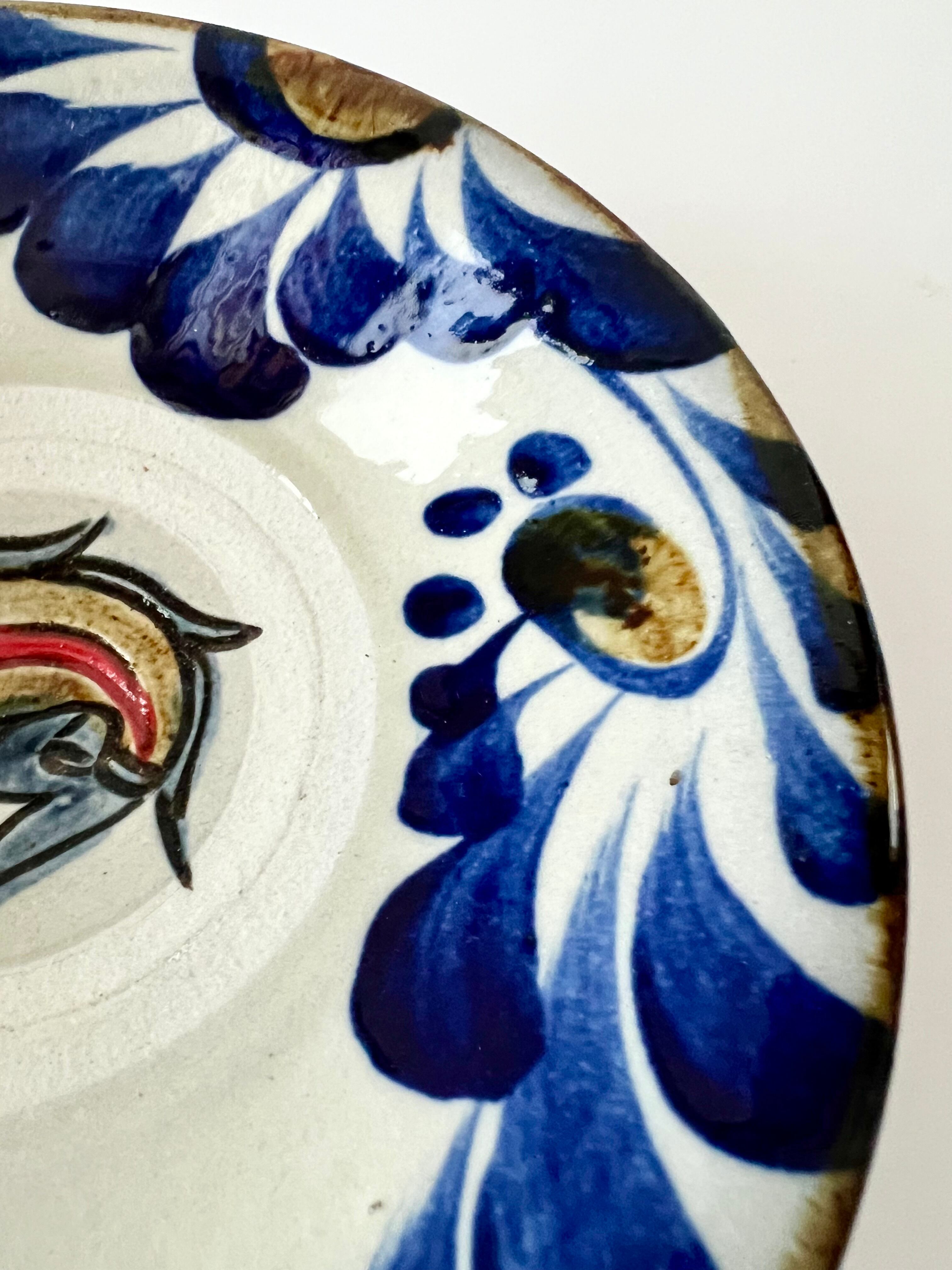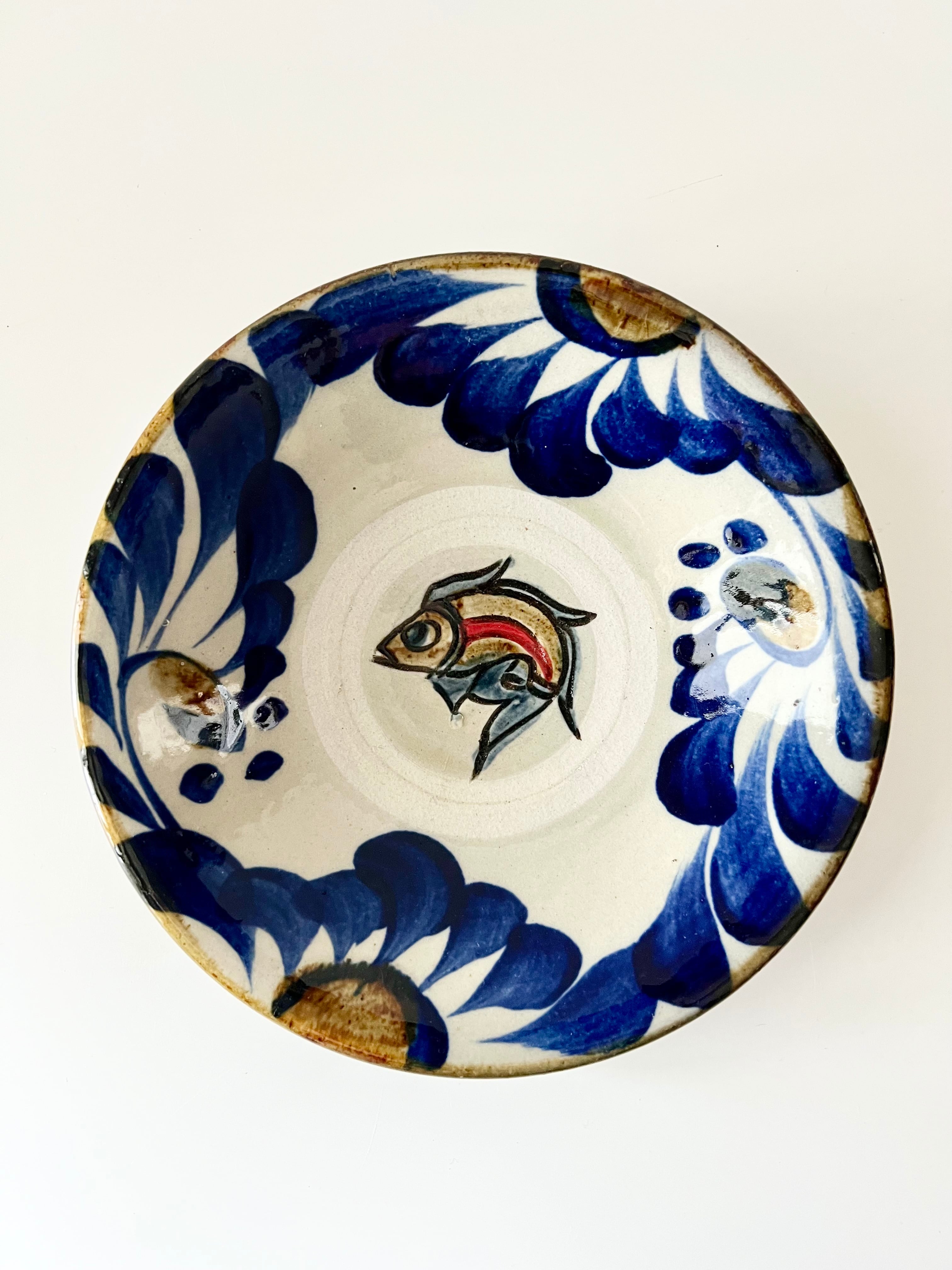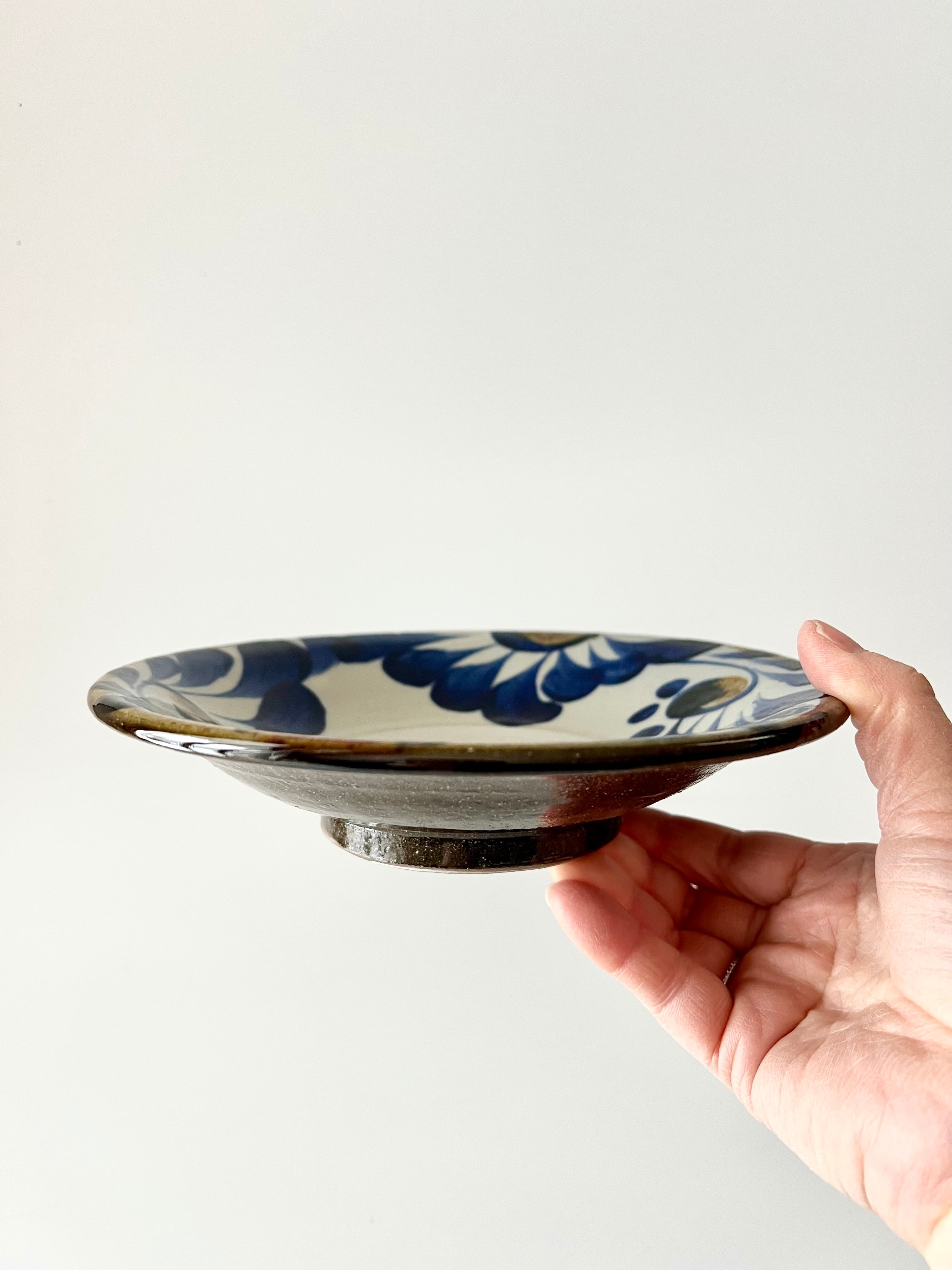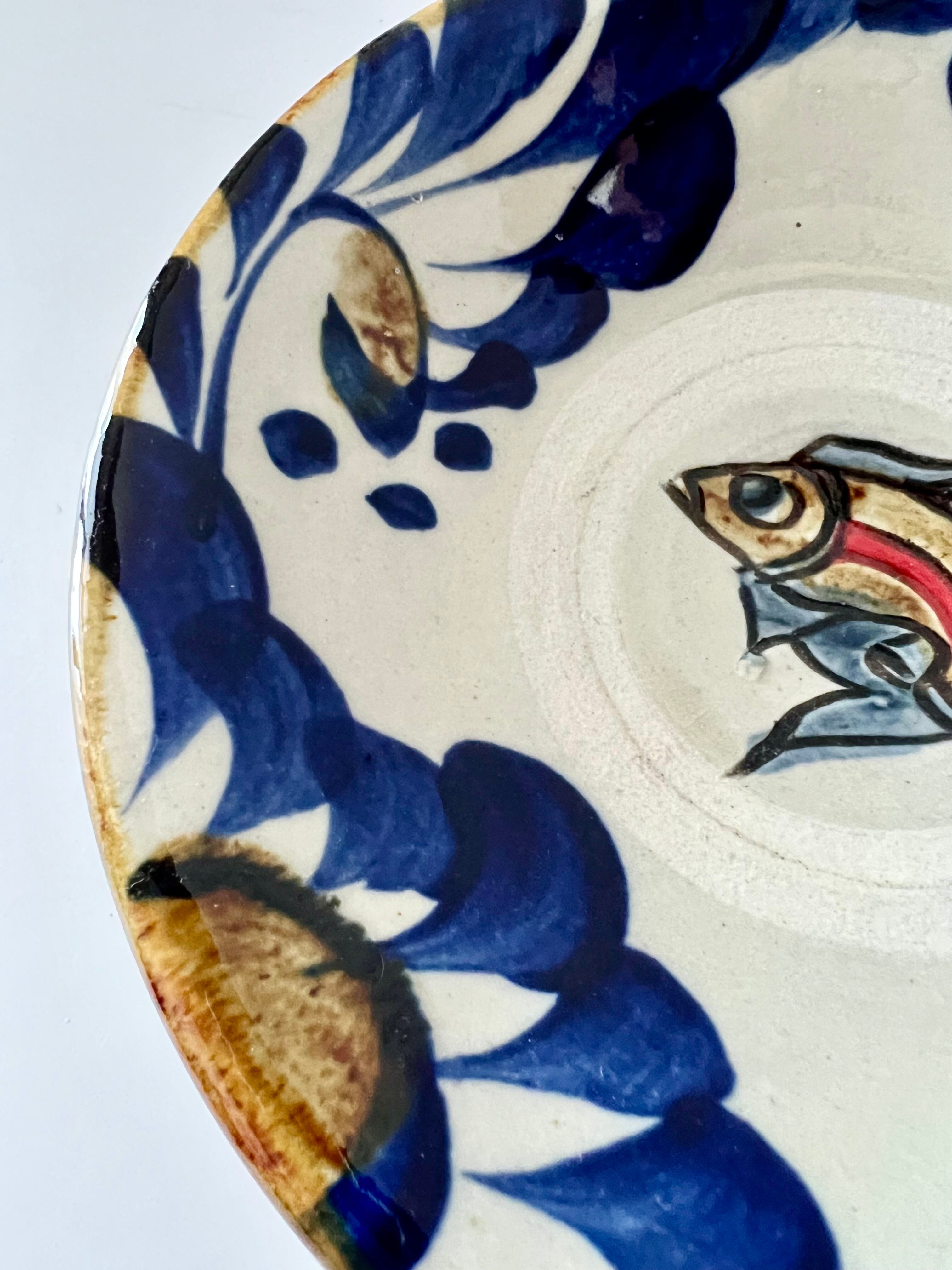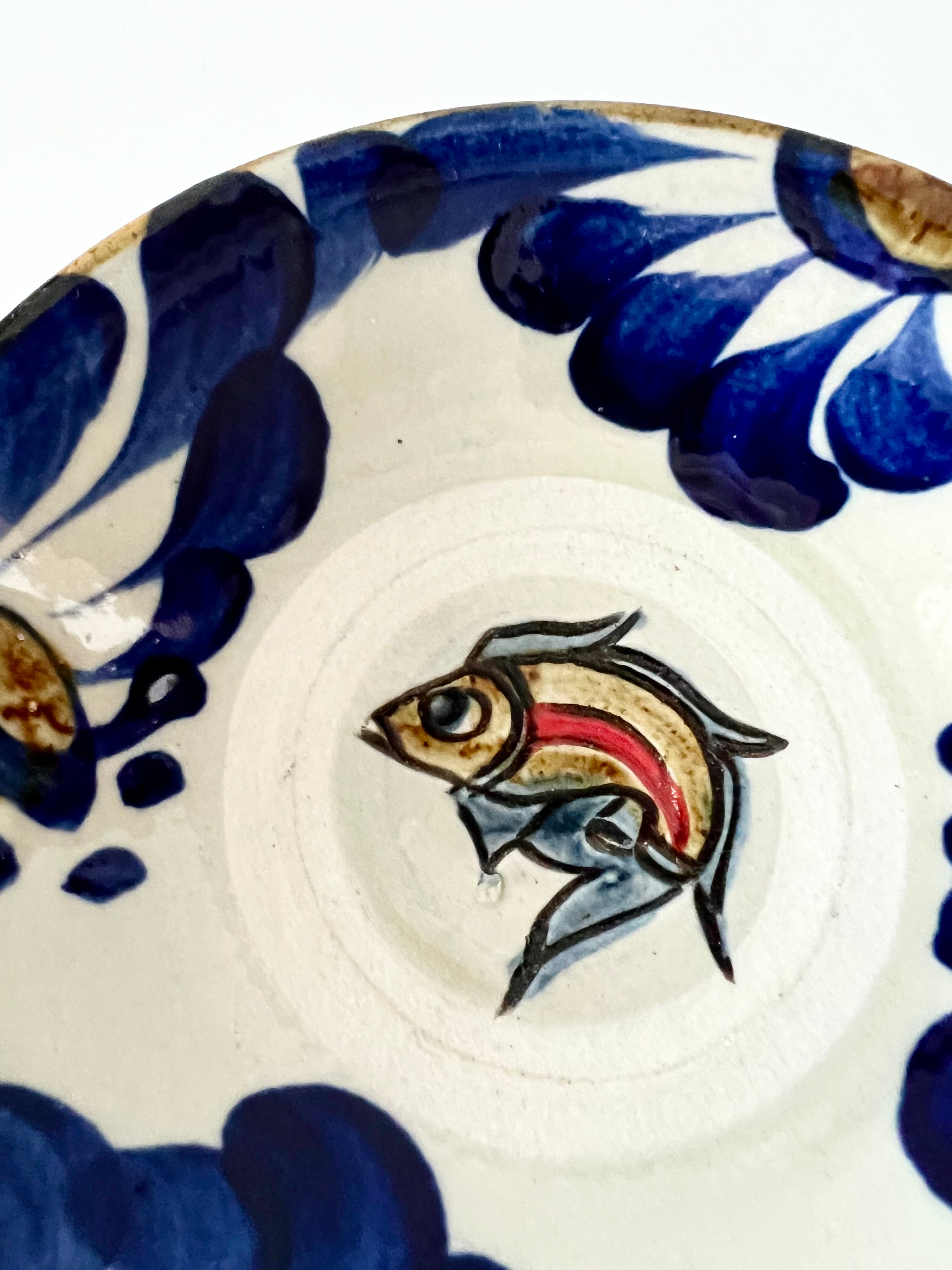 金城陶器 秀陶房 6寸皿 コバルト 唐草 魚紋