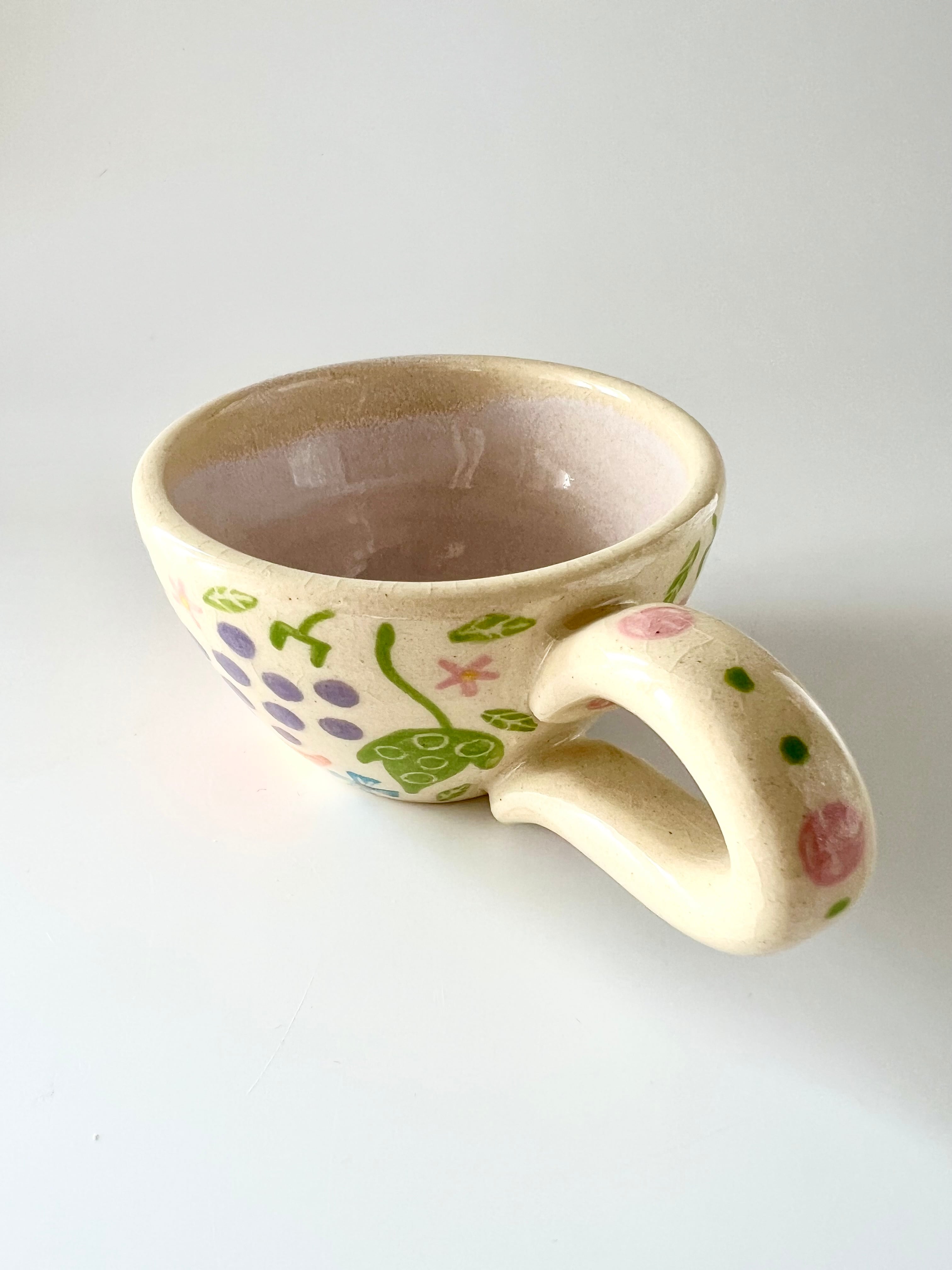 カラフルな絵付けが気持ちも明るくさせてくれるマグカップになります。お茶の時間も楽しいひと時になりそうですね。