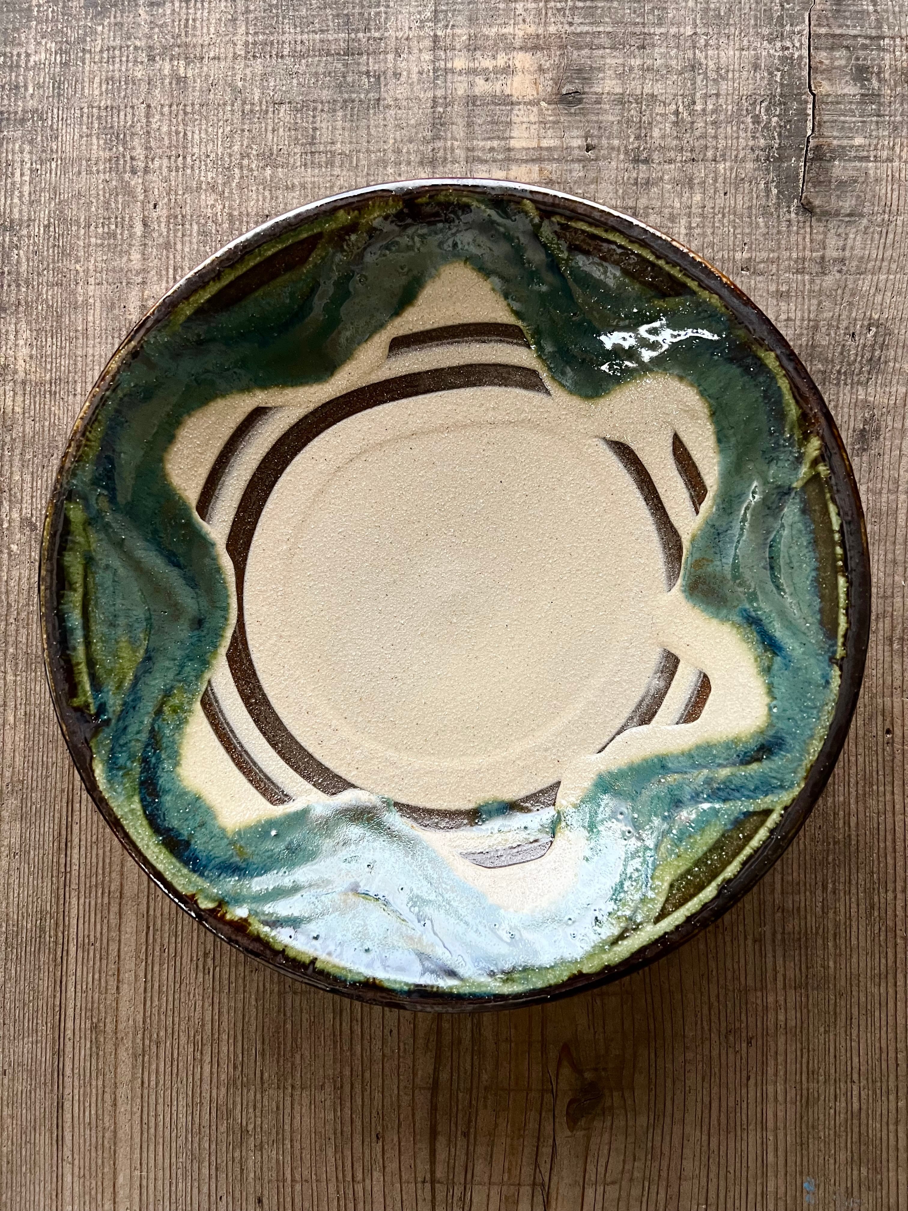 シマトウキ 榮一工房 8寸皿 オーグスヤ指掻き やちむん