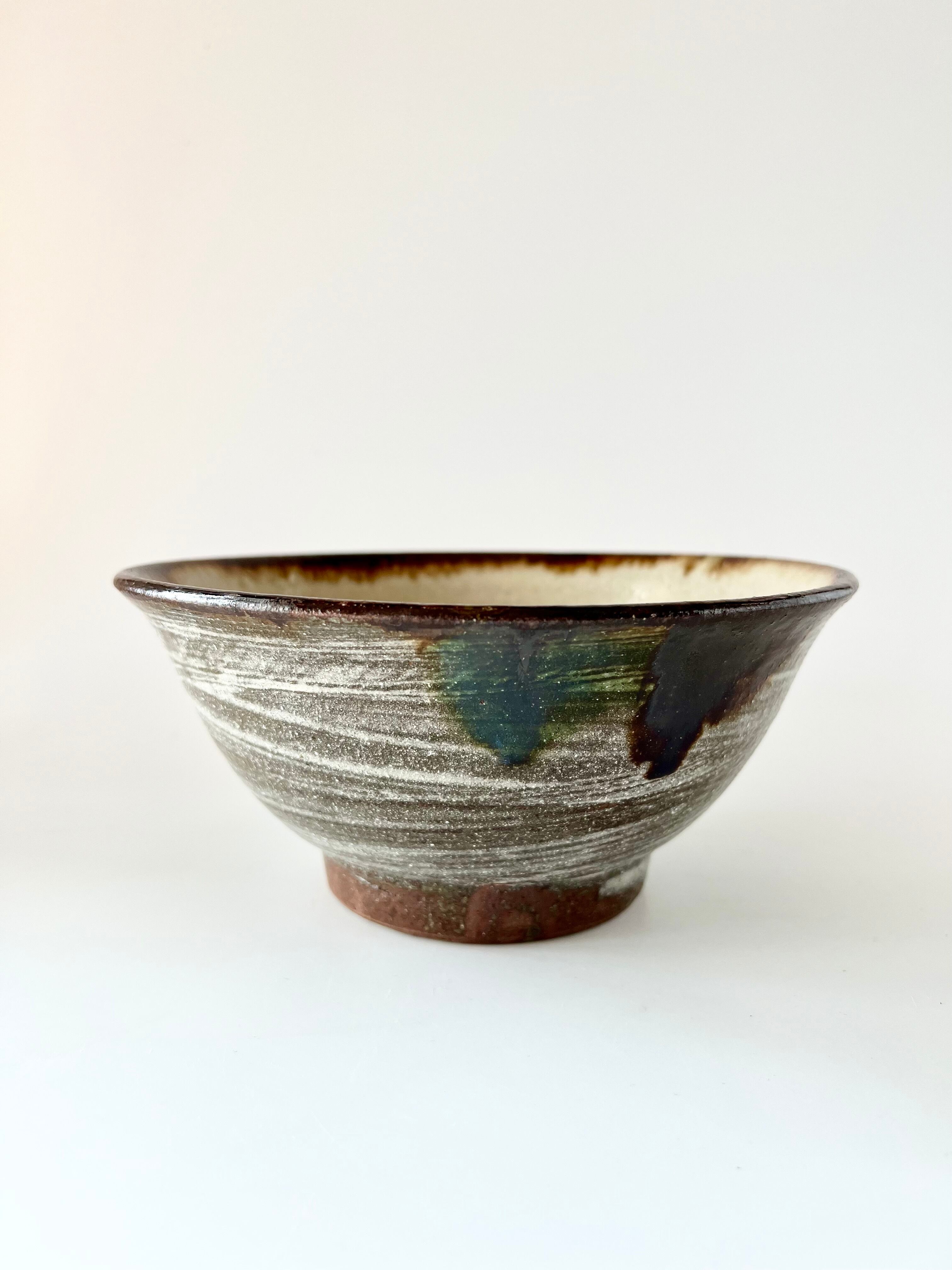 刷毛目と土の風合いが味のある6寸そばマカイになります。うどんやそば、ラーメンなどの麺類はもちろん、親子丼などの丼物にもお使いいただけます。