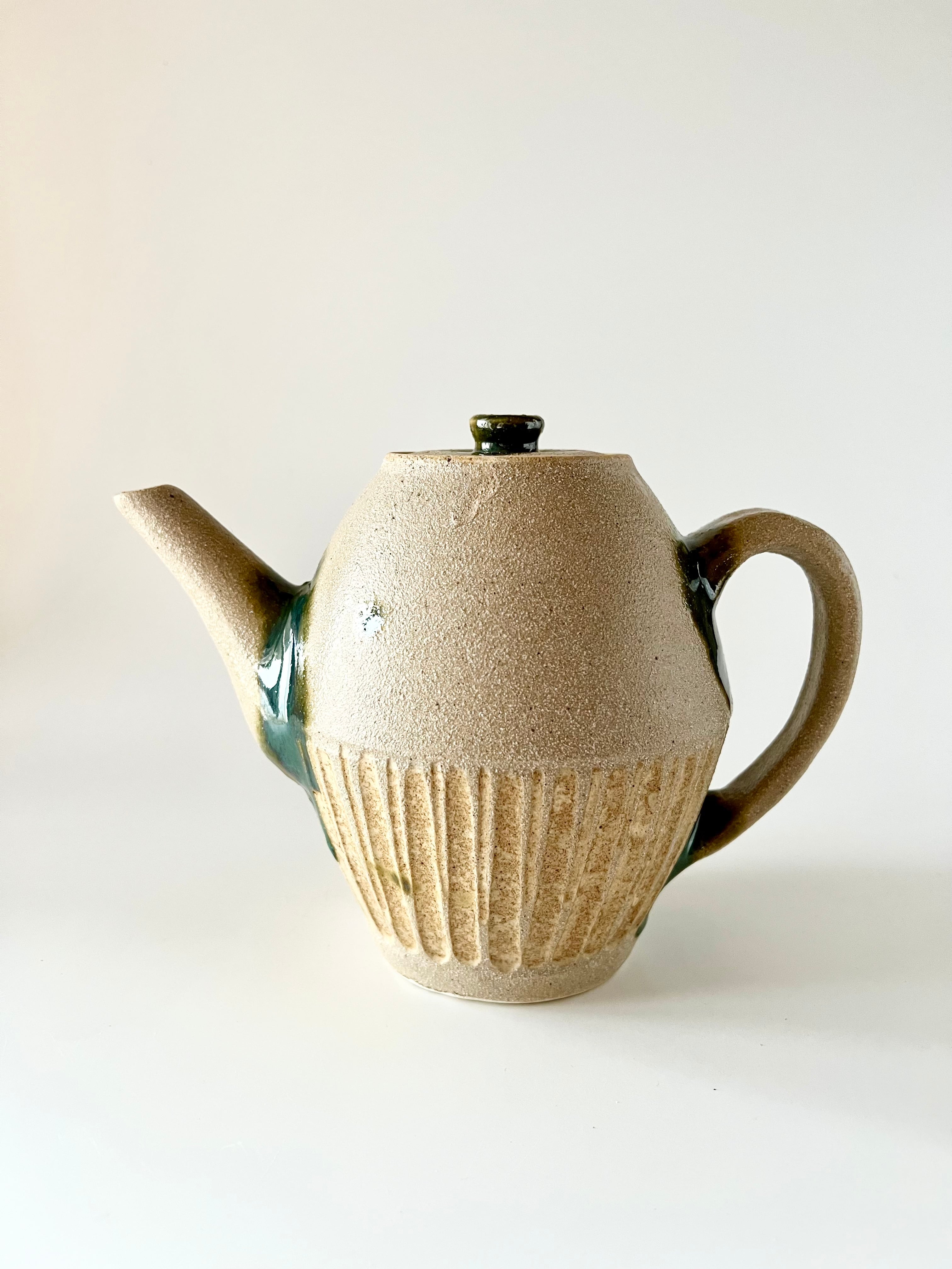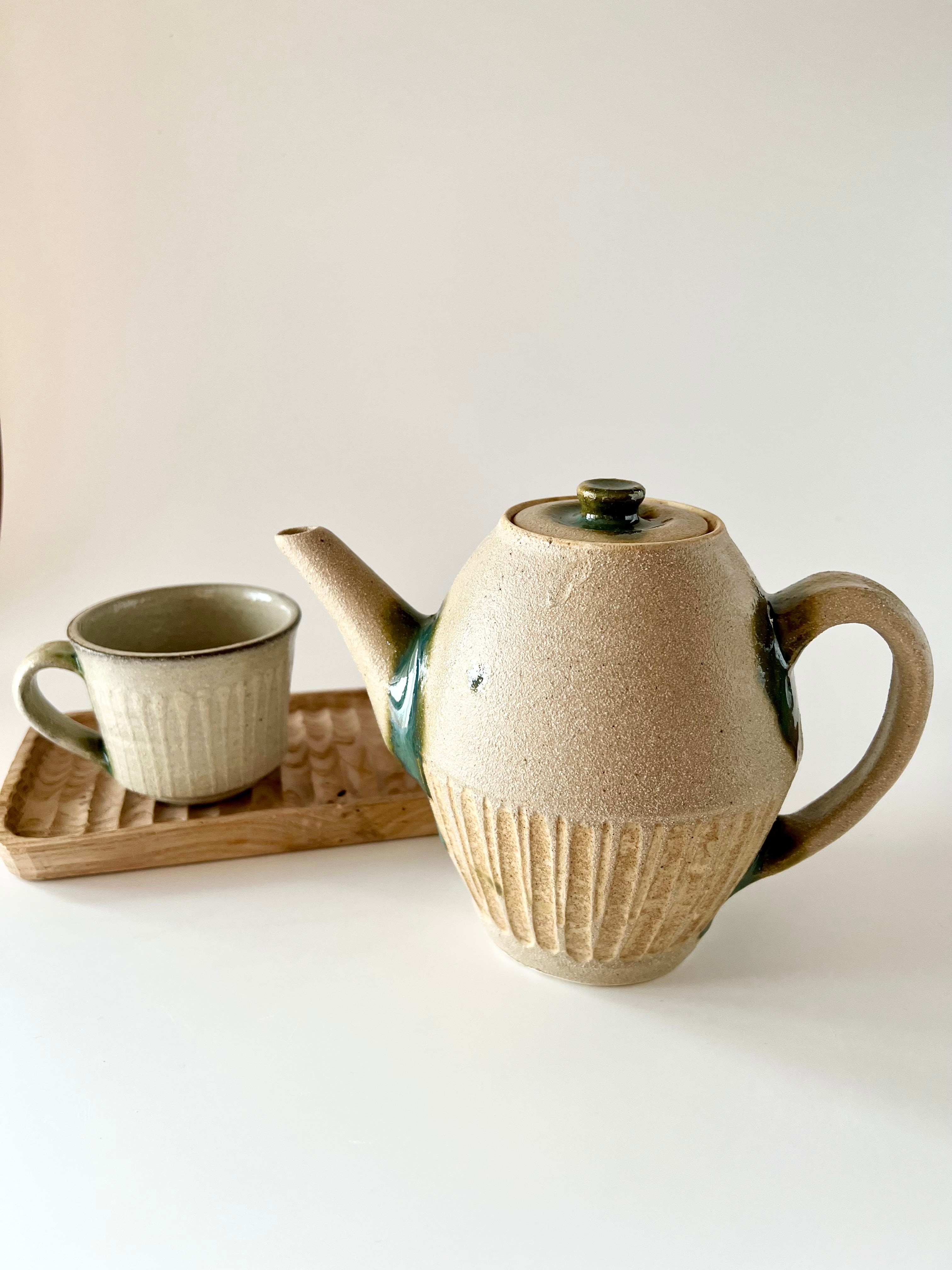 シマトウキ 榮一工房 ティーポット 白釉線彫 やちむん