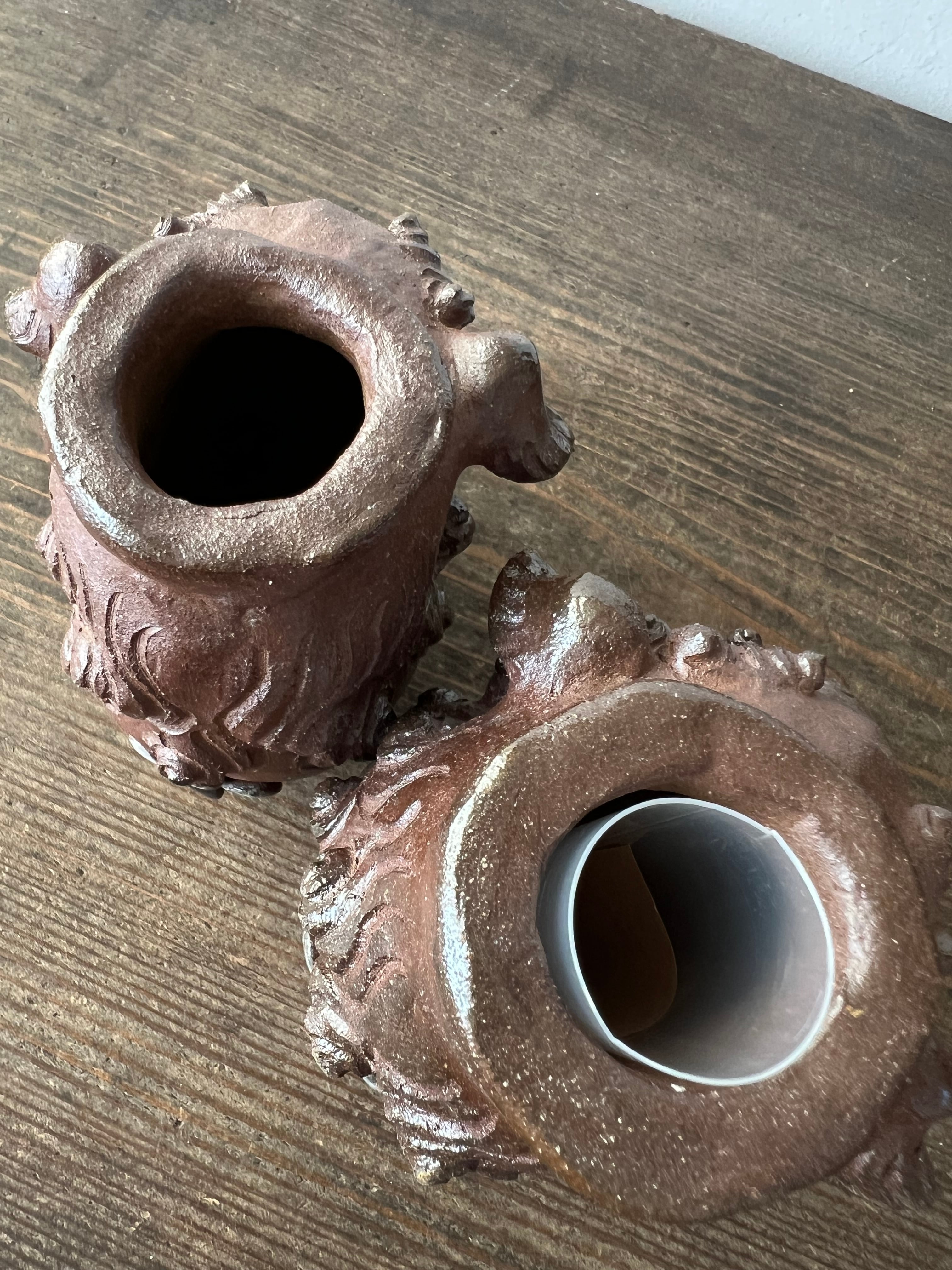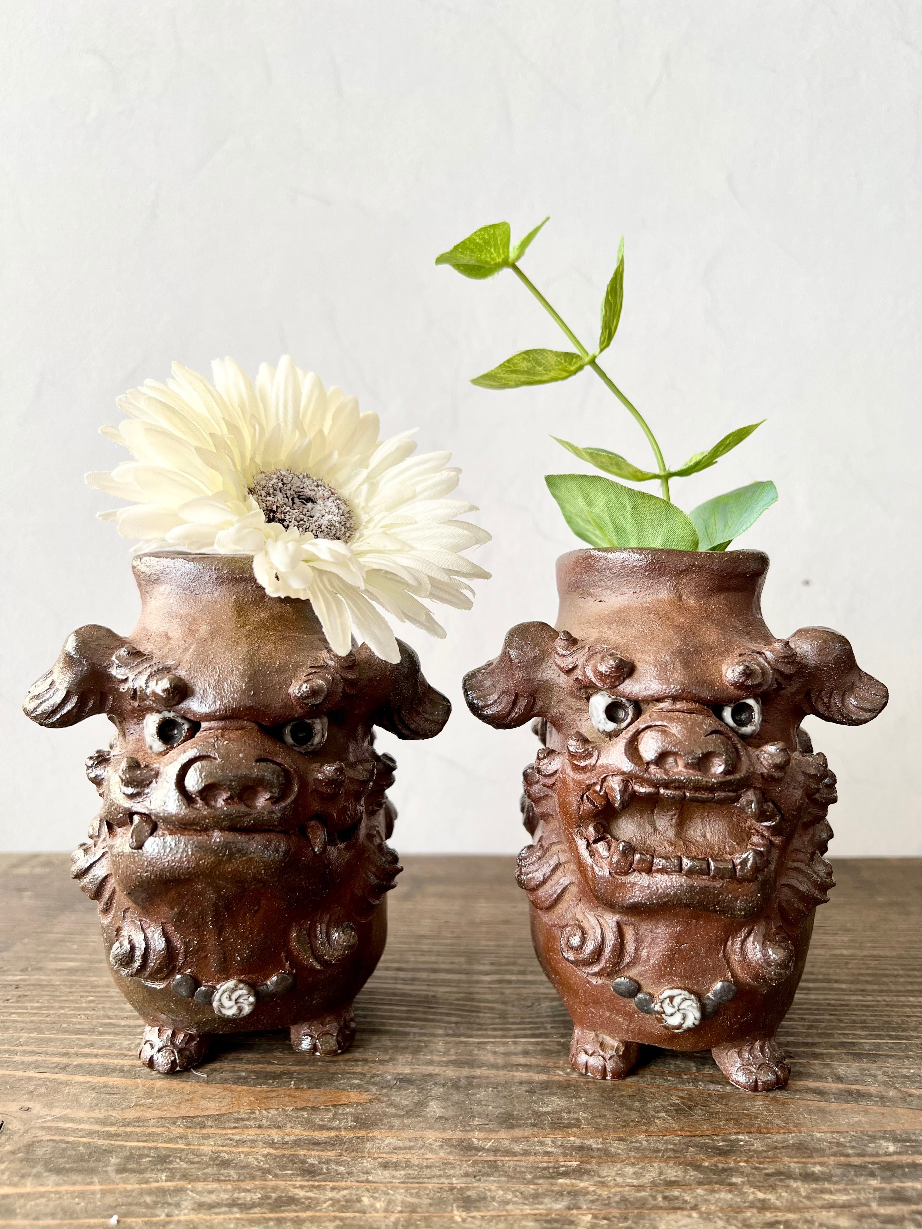 可愛らしいコロンとしたスタイルで大人気のシーサー陶房大海さんの花入れシーサーです。
